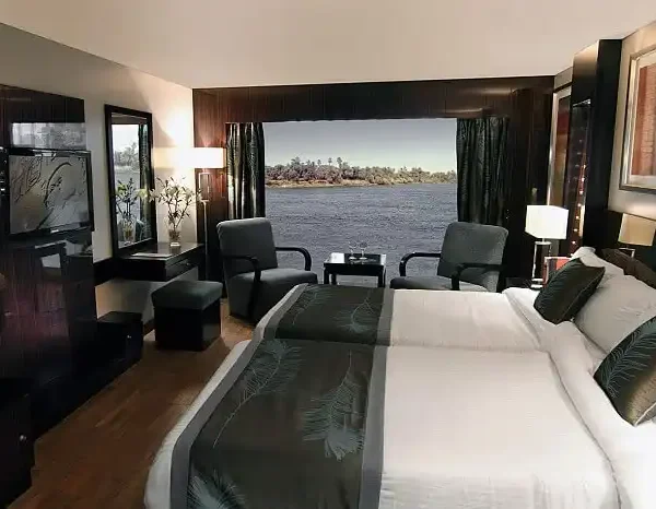 Le Fayan Nile Cruise offers an ultra-modern and luxurious journey along the timeless Nile River between Luxor and Aswan. Designed with a contemporary aesthetic and cutting-edge amenities, this elegant floating hotel stands out with its sleek architecture and spacious cabins featuring floor-to-ceiling windows for panoramic river views. The cruise provides 5-star comfort and personalized service, blending modern hospitality with the romance of ancient Egypt. Guests can enjoy gourmet dining, a large sun deck with a swimming pool, a fully equipped gym, and a chic lounge bar. Le Fayan Nile Cruise is perfect for travelers seeking a sophisticated, intimate, and stylish Nile cruise experience while exploring world-famous sites like Karnak Temple, Valley of the Kings, Kom Ombo, and Philae Temple.